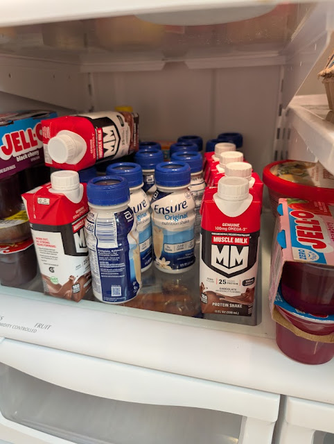 Stocked up on Ensure and Muscle Milk to make sure I am getting some of the nutrients not available in soup. I bought those at Costco. The Muscle Milk is really chocolatey. The Ensure is palatable but not great.